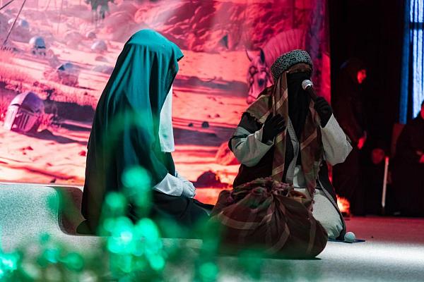 وشهد العرض حضور جمع من المؤمنات المعزيات، إذ تداخلت مشاعرهن بين الحزن والخشوع، وتفاعلهن مع كل مشهد يجسد سيرة الوفاء بأسمى معانيها.