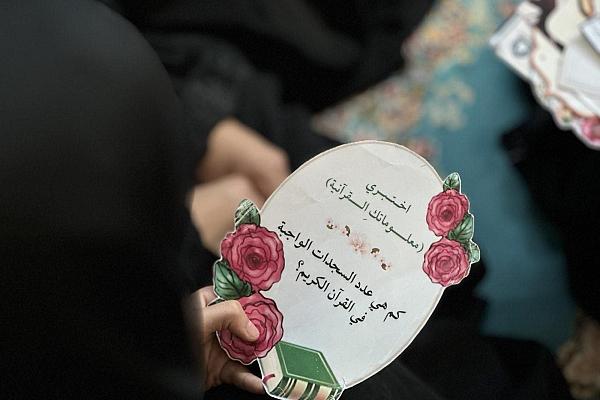 وقالت مسؤولة الشعبة السيّدة عذراء الشاميّ: نظرًا لِأهميّة غرس الثقافة القرآنيّة ومعرفة واجب العبد تجاه القرآن الكريم، دأبت مِلاكات الوحدة القرآنيّة التابعة للشعبة على تنظيم برنامج (اختبري معلوماتكِ القرآنية) التفاعلي مع الزائرات.