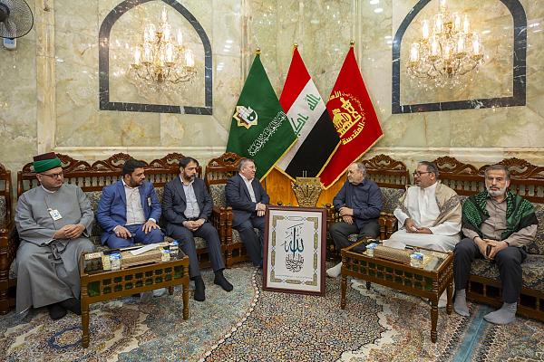 وكان في استقبالهم، نائبُ الأمين العام للعتبة المقدّسة السيد عباس موسى أحمد، ورئيسُ المَجمَع العلميّ للقرآن الكريم الدكتور مشتاق العلي.